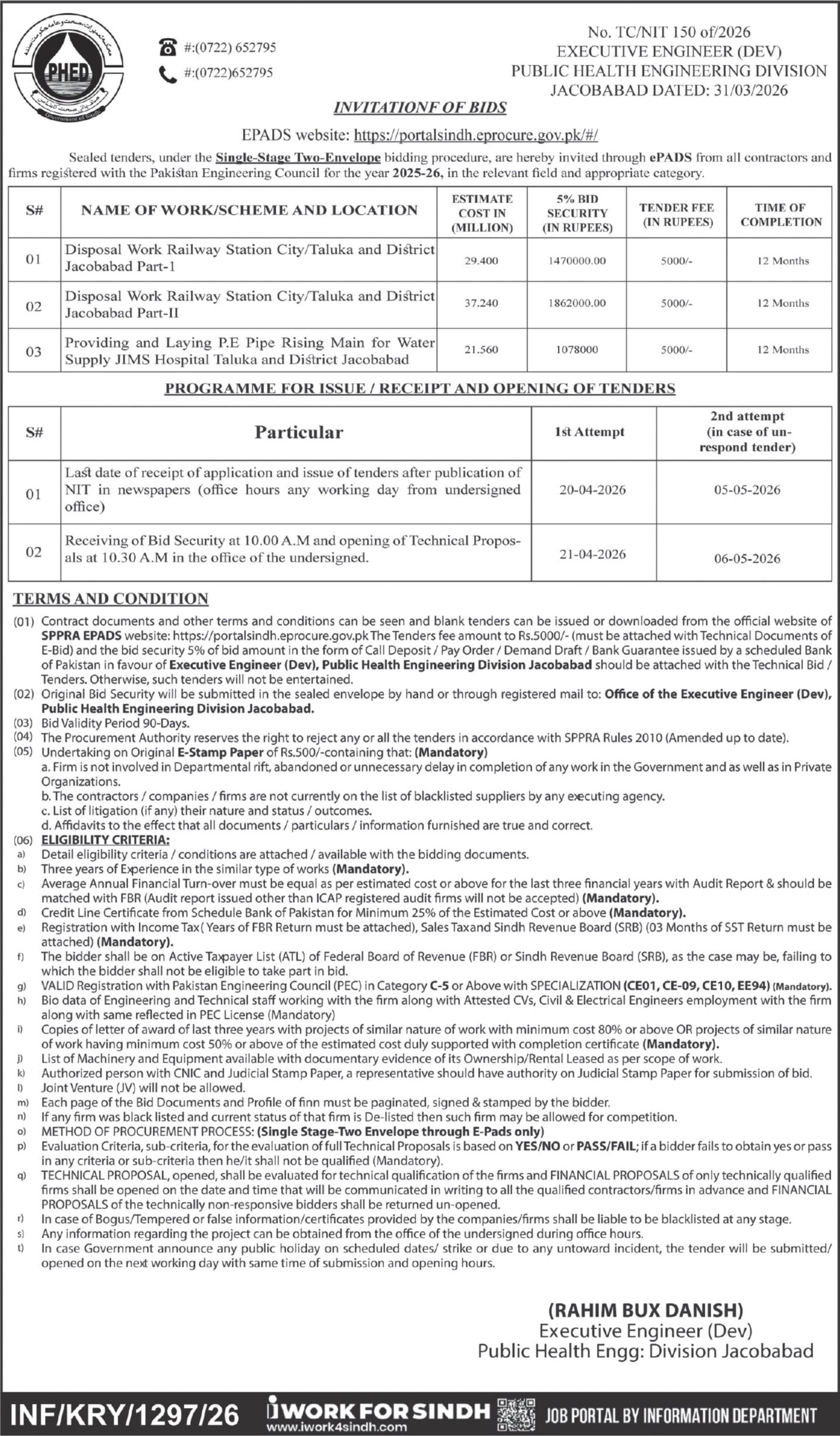 Buildings, Construction, Engineering, Pipes, Repair & Maintenance, Roads, Water Supply Scheme / Drains / Sewerage