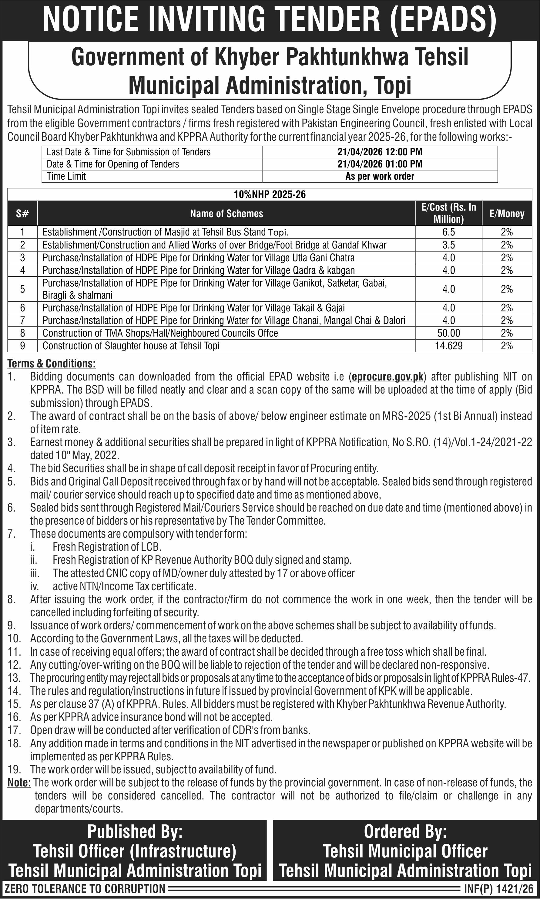 Buildings, Construction, Engineering, Pipes, Repair & Maintenance, Roads, Water Supply Scheme / Drains / Sewerage