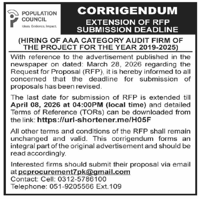 Consultancy, Corrigendum/Addendum , Services Required