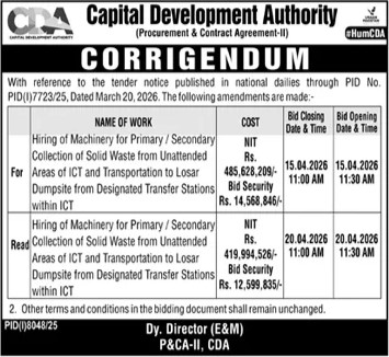 Corrigendum/Addendum , Development Authority, Electrical, Electronics, General Order Supply, Machinery, Mechanical, Services Required, Transportation