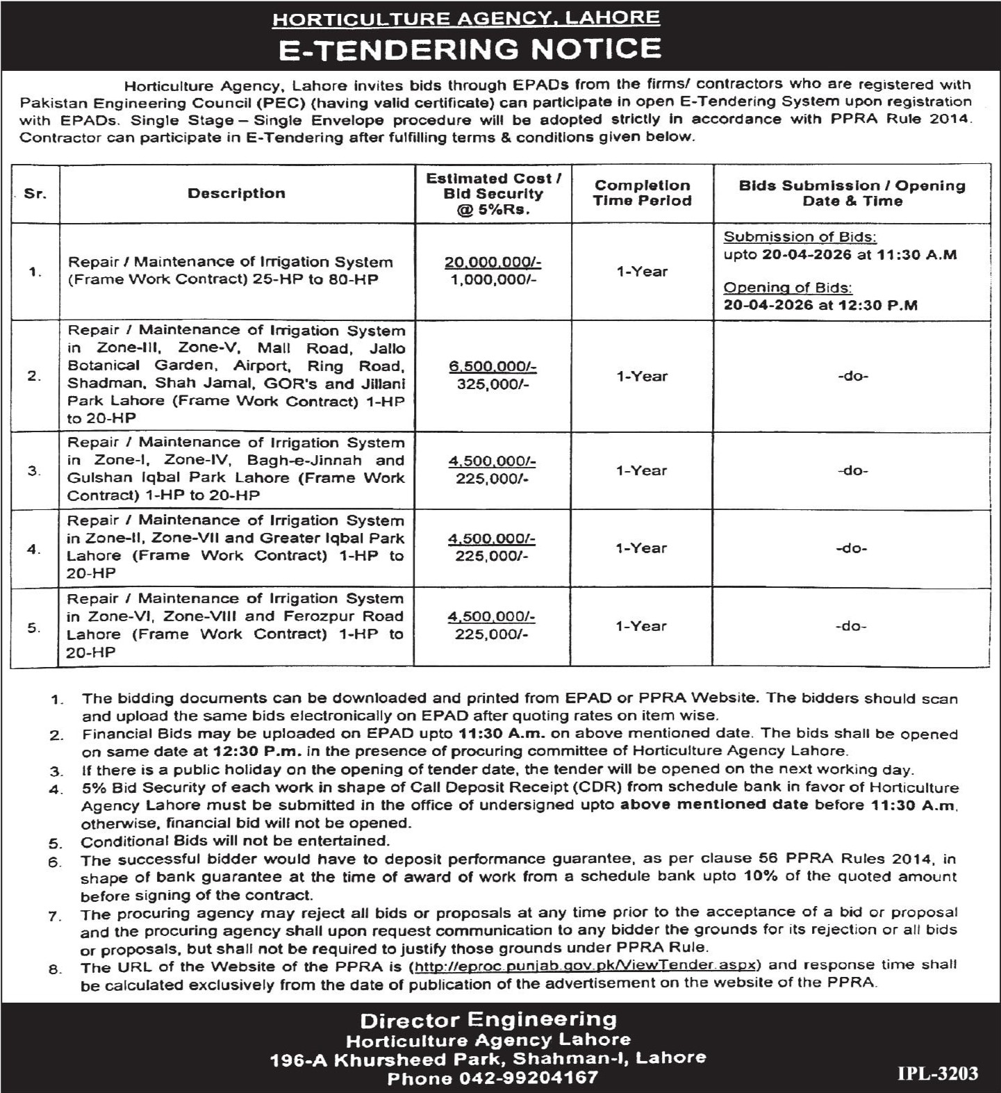 Buildings, Construction, Engineering, Horticulture, Irrigation, Repair & Maintenance, Roads, Water Supply Scheme / Drains / Sewerage
