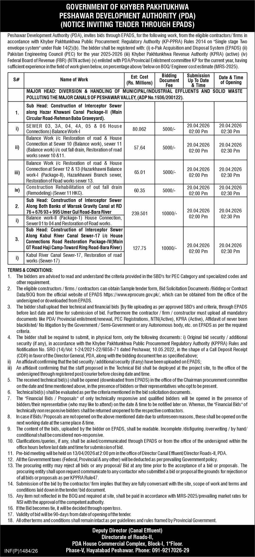 Balance, Baldia, Buildings, Construction, Development Authority, Engineering, Repair & Maintenance, Roads, Water, Water Supply Scheme / Drains / Sewerage