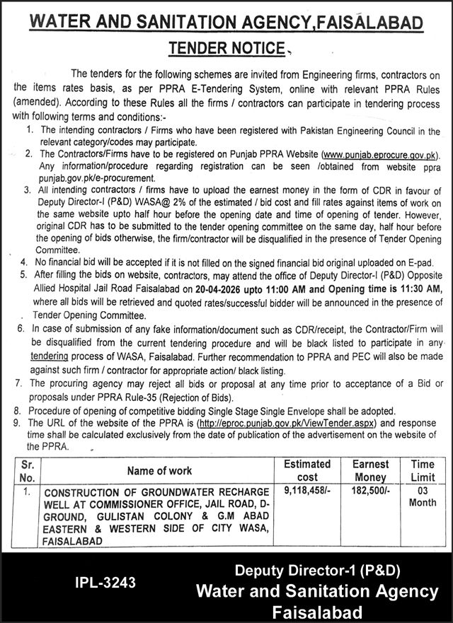 Buildings, Construction, Engineering, Repair & Maintenance, Roads, WASA, Water, Water Supply Scheme / Drains / Sewerage
