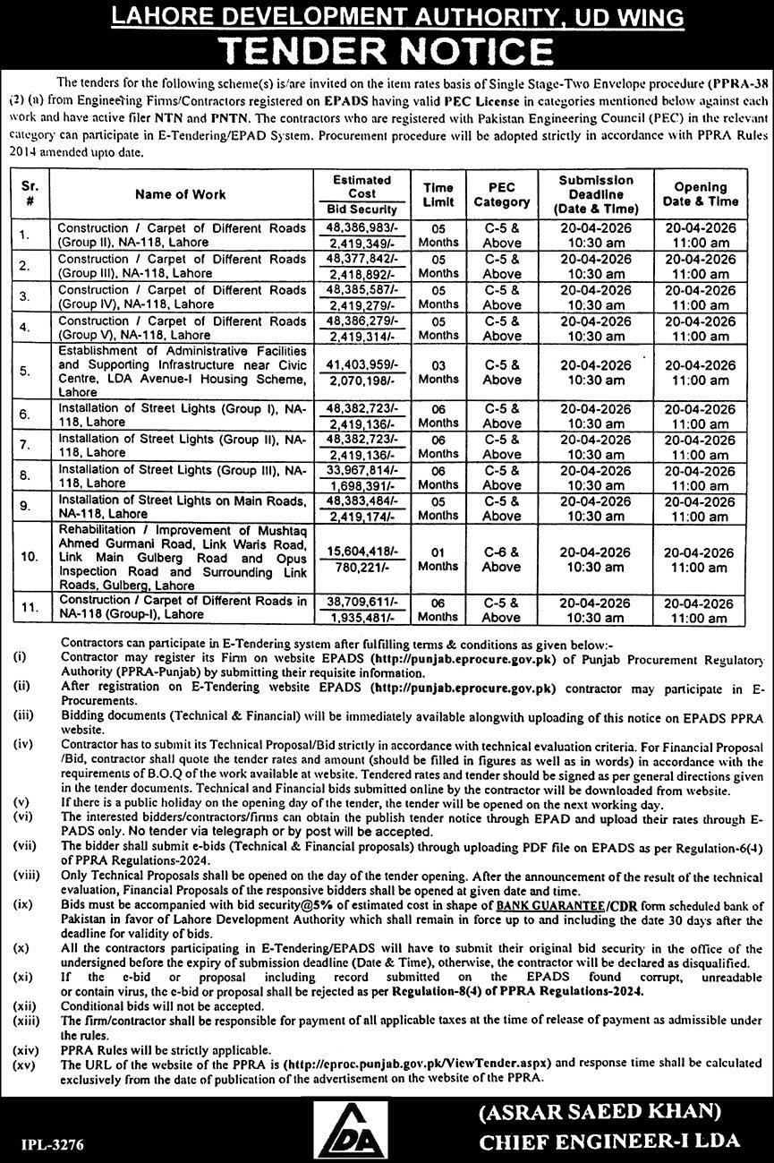 Buildings, Construction, Development Authority, Engineering, LDA, Repair & Maintenance, Roads