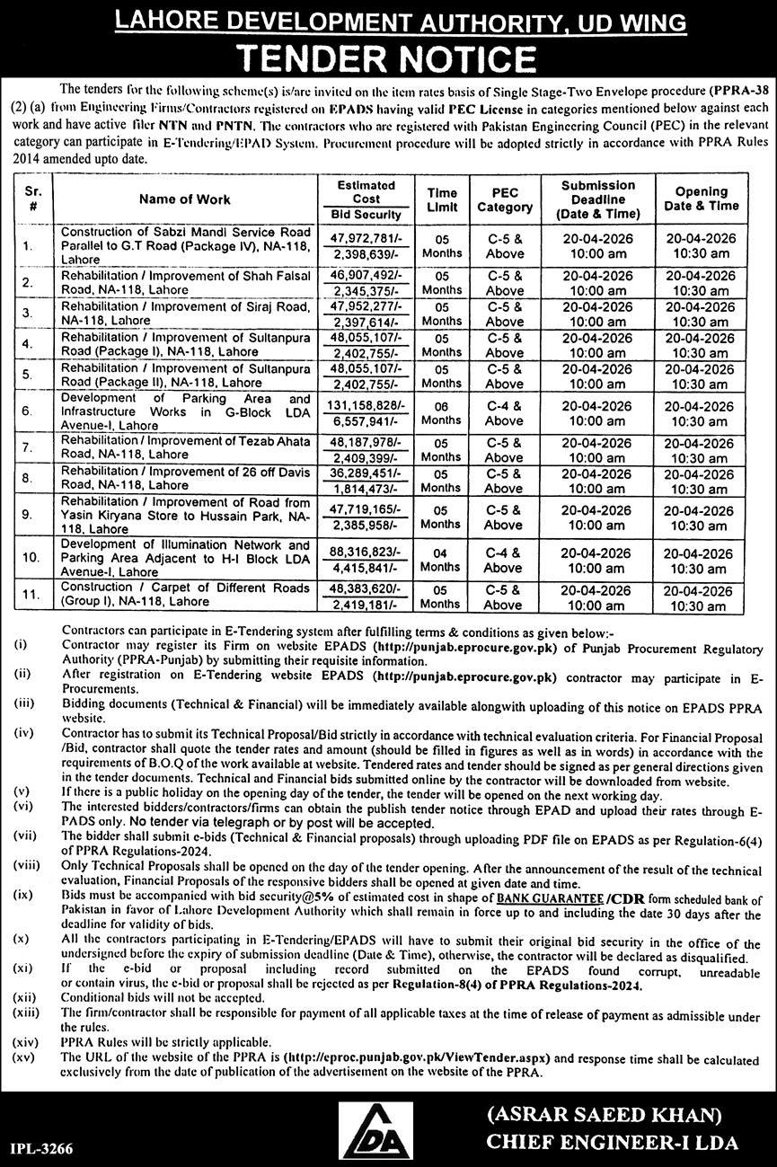 Buildings, Construction, Development Authority, Engineering, LDA, Repair & Maintenance, Roads