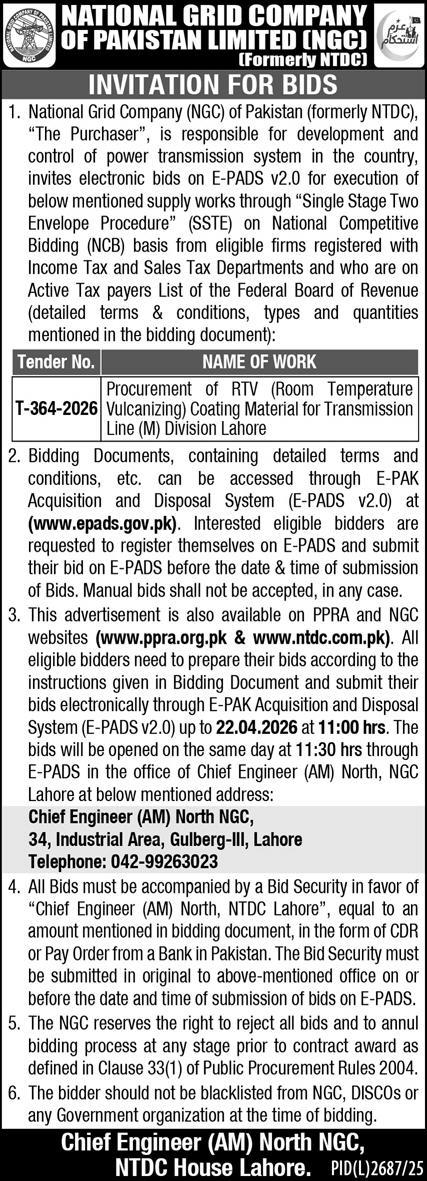 Electrical, Electronics, Energy, General Order Supply, Machinery, Mechanical, WAPDA