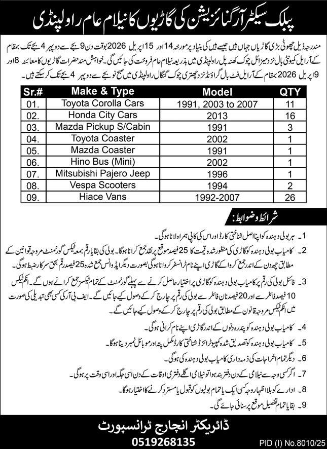 Auction, Baldia, Scrap Material, Toll Tax