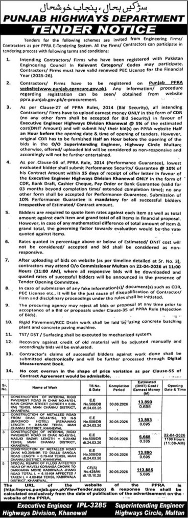 Buildings, Construction, Engineering, Highways, Repair & Maintenance, Roads, Water Supply Scheme / Drains / Sewerage