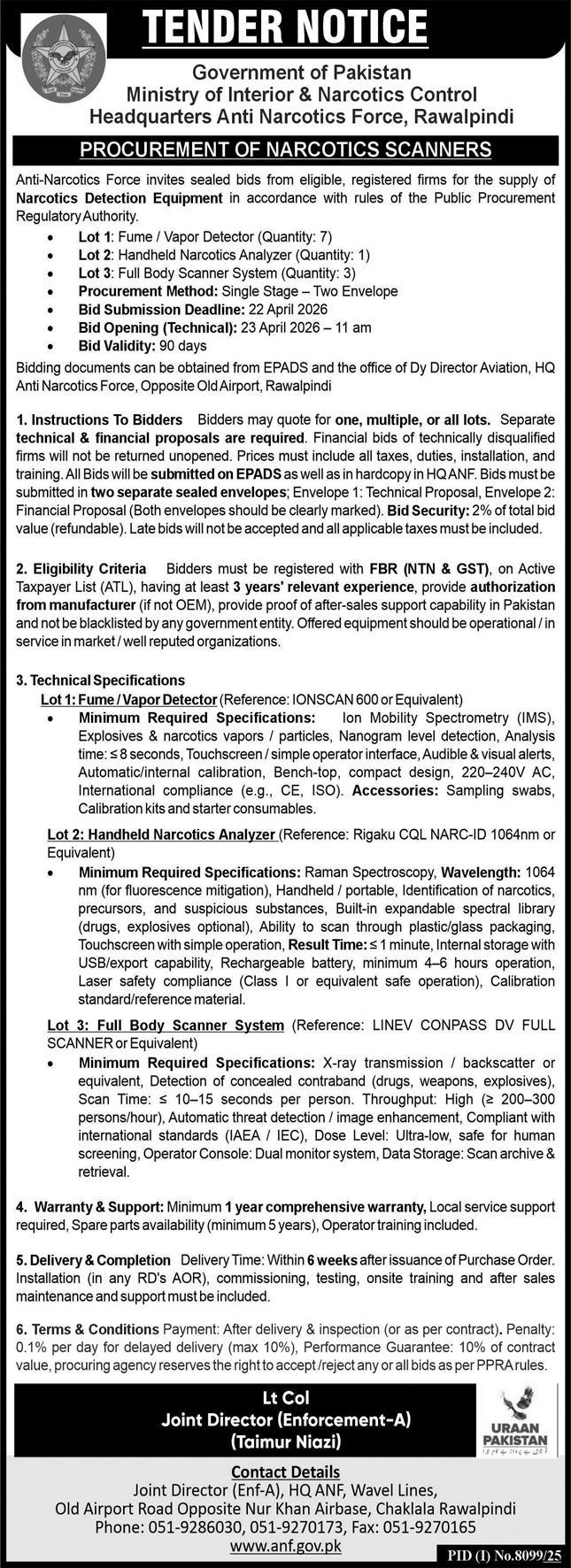 Directorate General, Anti Narcotics Force, Rawalpindi