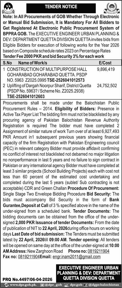 Buildings, Construction, Engineering, Repair & Maintenance, Roads, Water Supply Scheme / Drains / Sewerage