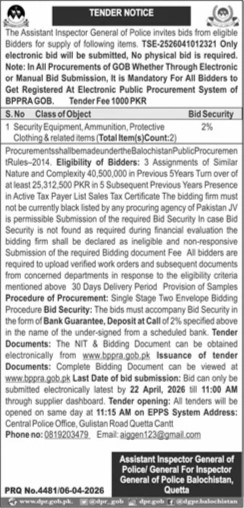 General Order Supply, Security, Services Required, Textile/Uniform/Shoes