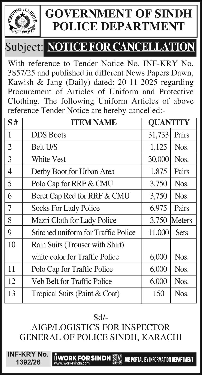 CANCELLATION OF TENDER