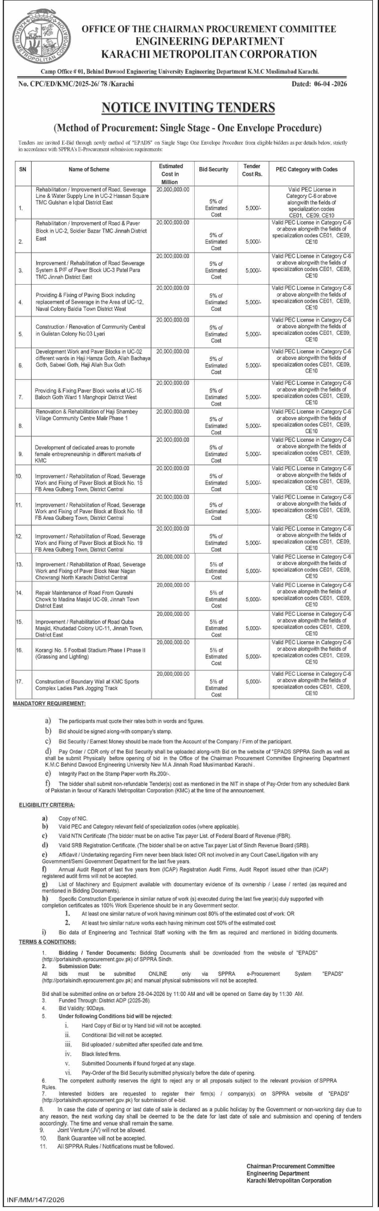 Buildings, Construction, Engineering, Repair & Maintenance, Roads, Water Supply Scheme / Drains / Sewerage