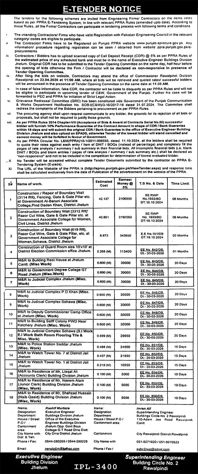 Buildings, Construction, Engineering, Repair & Maintenance, Roads, Water Supply Scheme / Drains / Sewerage
