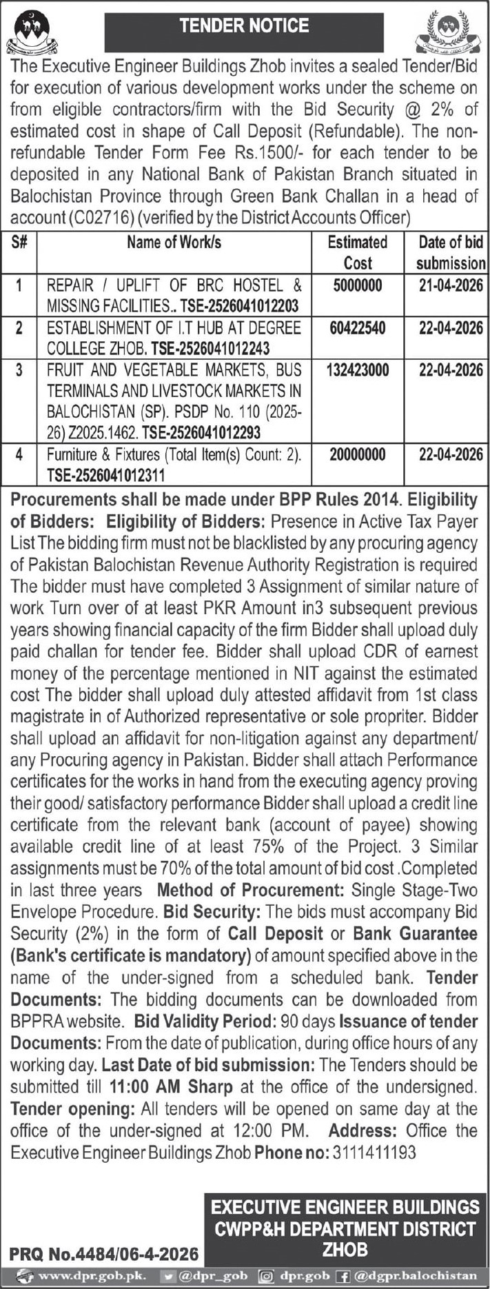 Buildings, Construction, Engineering, Furniture, Interiors, Repair & Maintenance, Roads, Water Supply Scheme / Drains / Sewerage