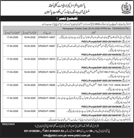 Buildings, Construction, Corrigendum/Addendum , Engineering, Repair & Maintenance, Roads, Tiles/Marbles, Water Supply Scheme / Drains / Sewerage