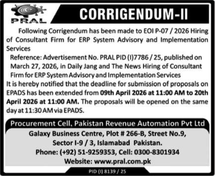 Consultancy, Corrigendum/Addendum , Services Required