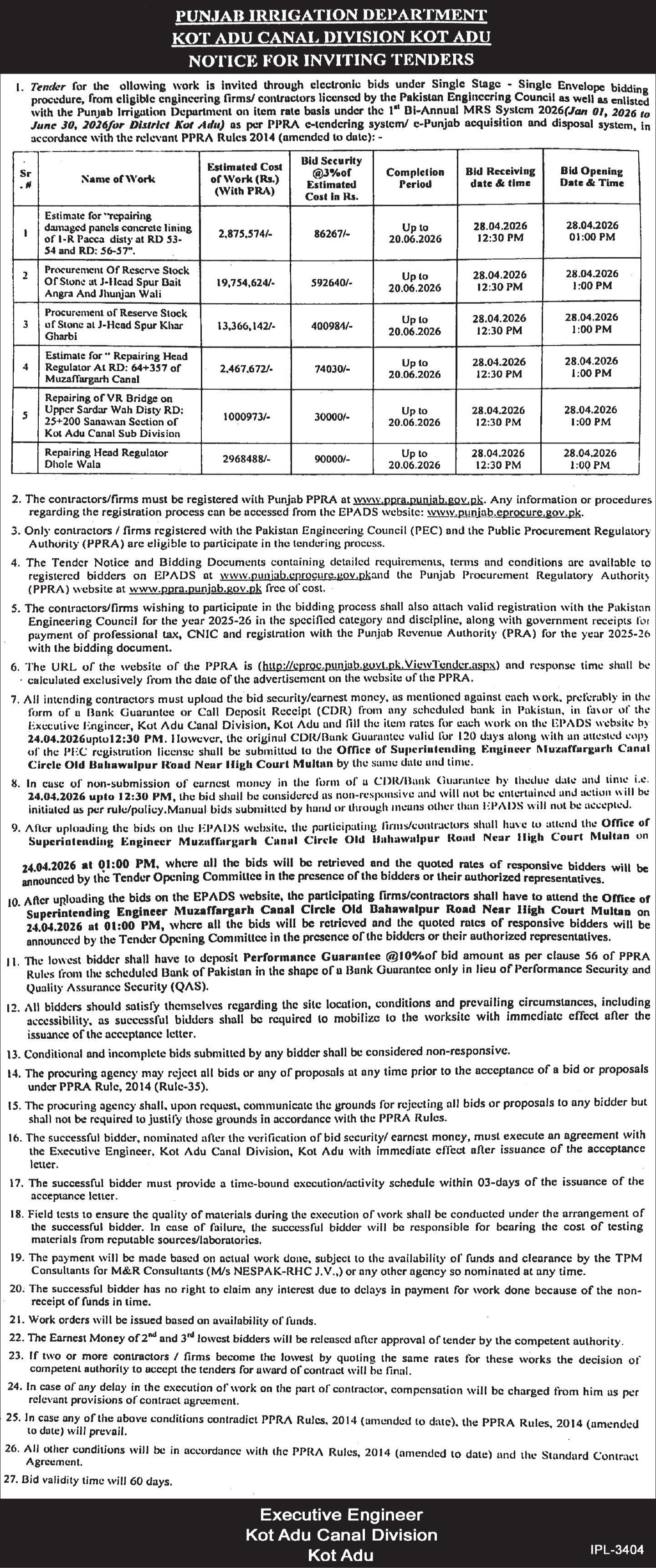 Buildings, Construction, Engineering, Irrigation, Repair & Maintenance, Roads, Water Supply Scheme / Drains / Sewerage