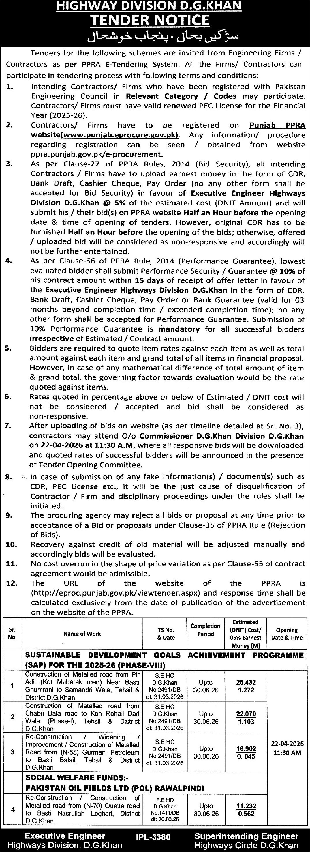 Buildings, Construction, Engineering, Repair & Maintenance, Roads, Water Supply Scheme / Drains / Sewerage