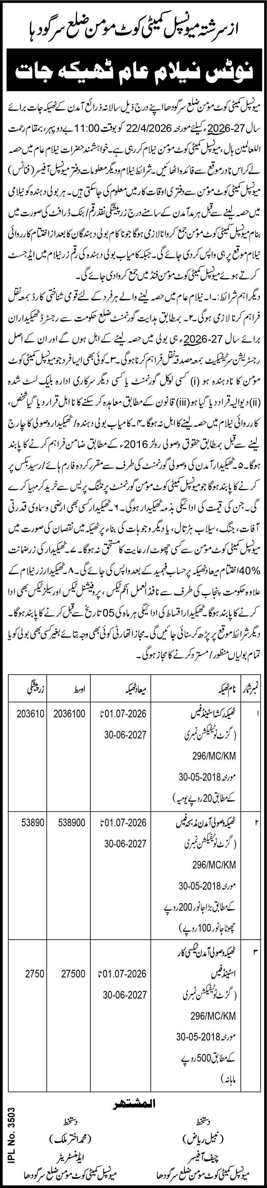 Auction, Baldia, Scrap Material, Toll Tax