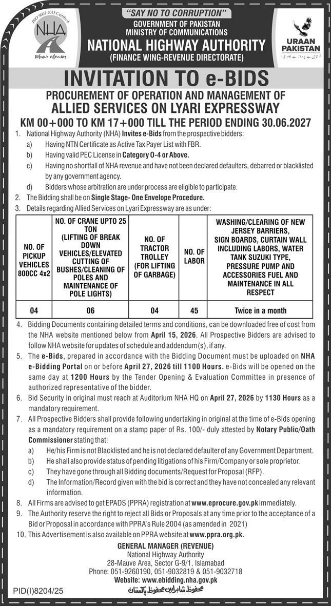 Construction, Engineering, General Order Supply, Highways, Machinery, Mechanical, NHA, Repair & Maintenance