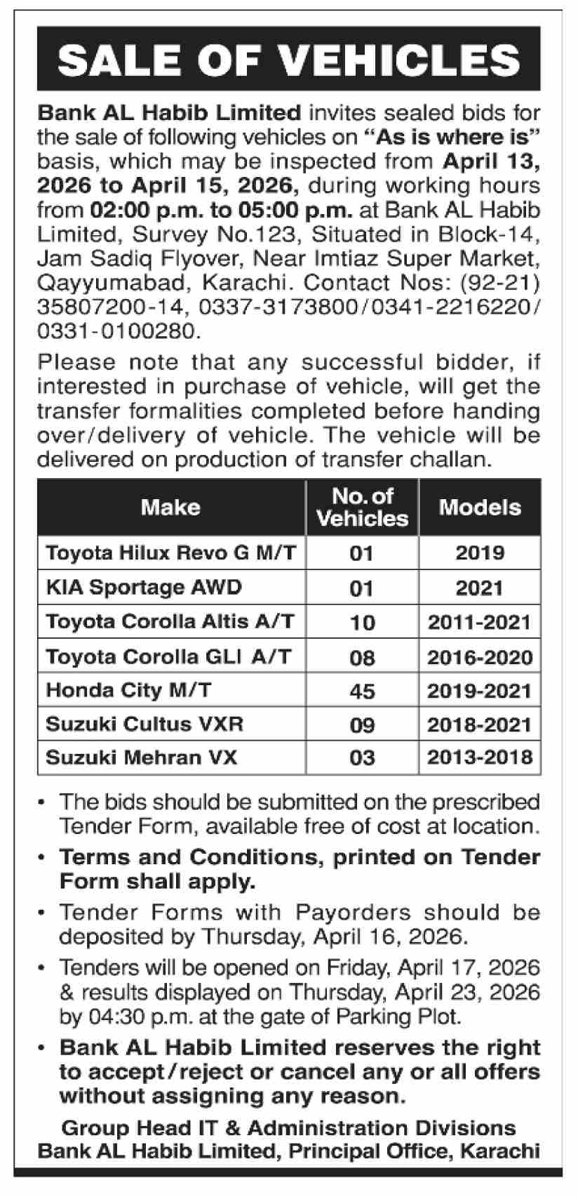 Auction, Baldia, Bank Auctions, Scrap Material, Toll Tax
