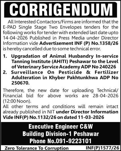 Communication & Works, Construction, Corrigendum/Addendum , Electrical, Electronics, Engineering, General Order Supply, Machinery, Mechanical, Repair & Maintenance
