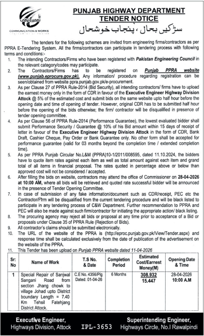 Buildings, Construction, Engineering, Highways, Repair & Maintenance, Roads, Water Supply Scheme / Drains / Sewerage
