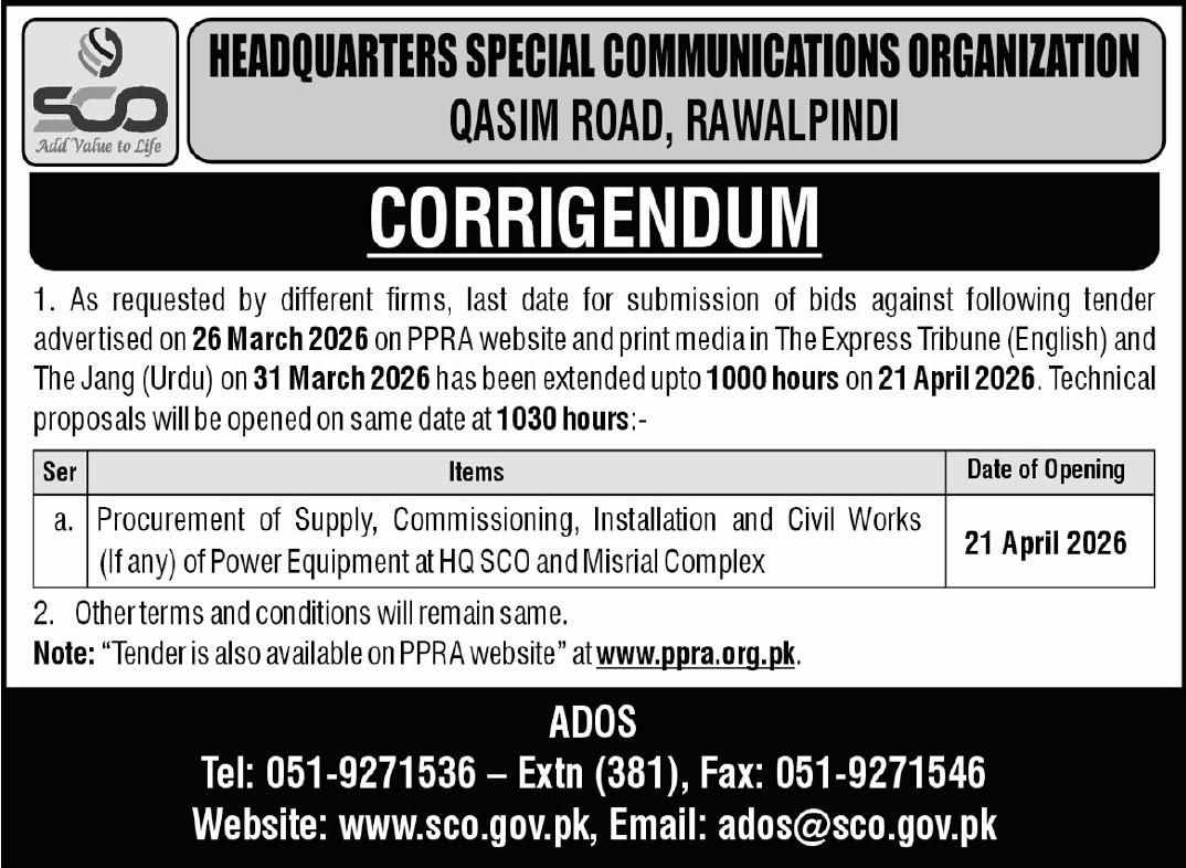 Construction, Corrigendum/Addendum , Electrical, Electronics, Engineering, General Order Supply, Machinery, Mechanical, Repair & Maintenance